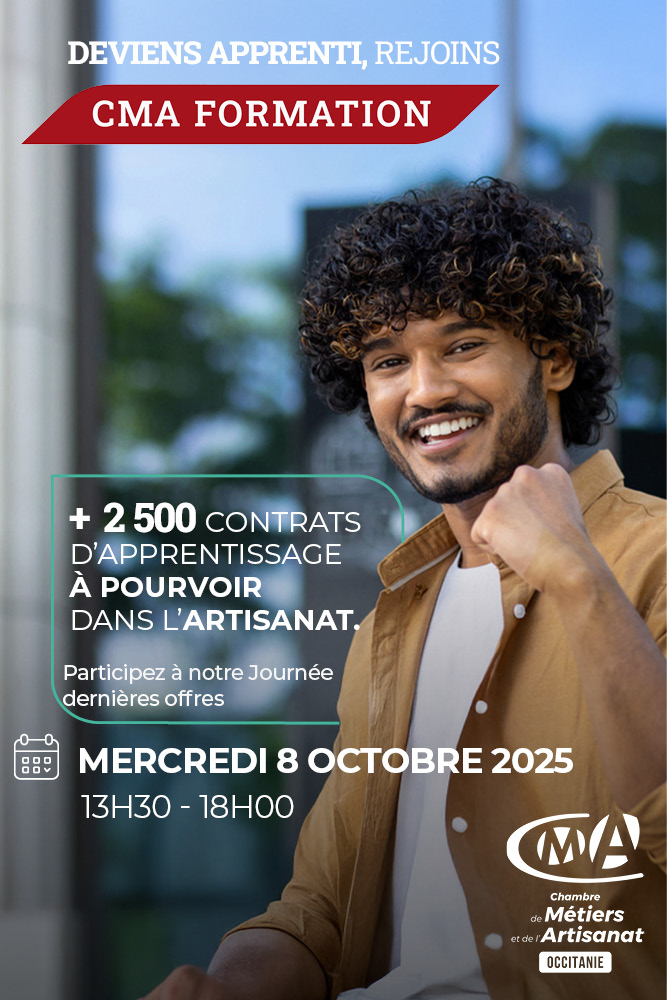Journée « Dernières Offres » mercredi 8 octobre de 13h30 à 18h00 à CMA FORMATION TOULOUSE MURE